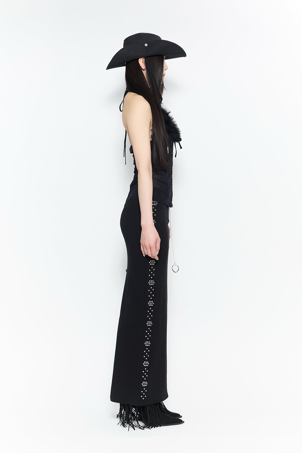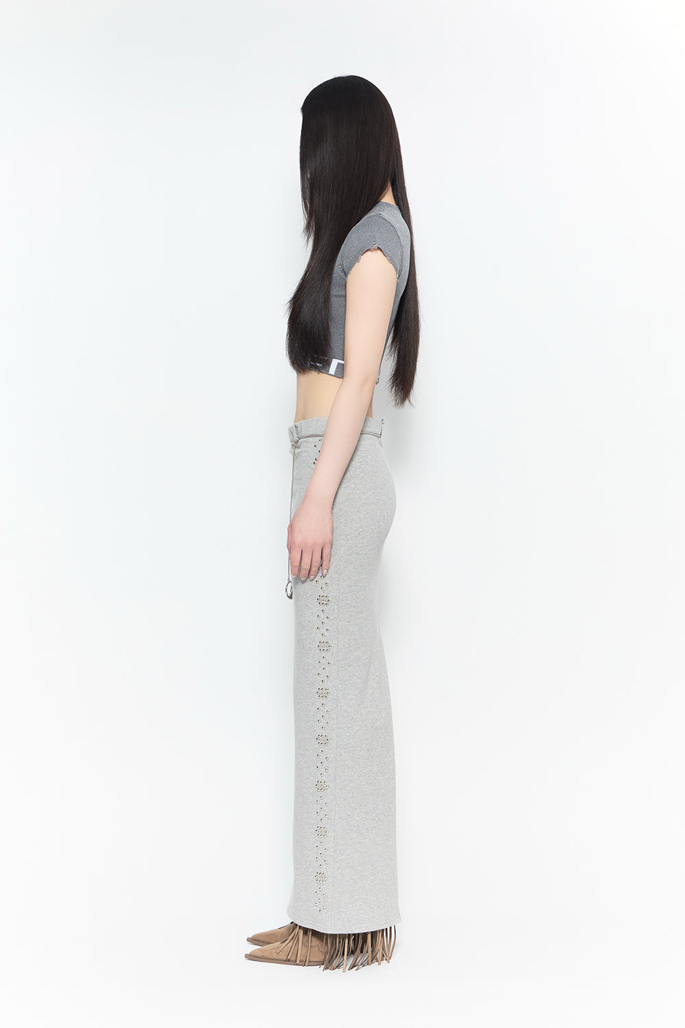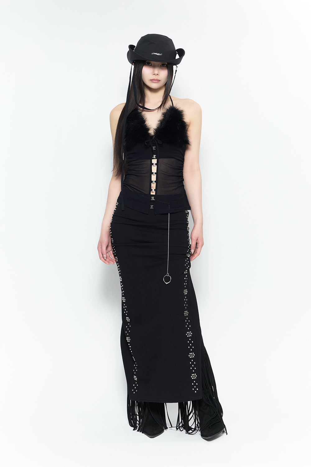 ご注文からお届けまで最大で5日程お時間をいただきます。 ご注文いただいた順番に発送を進めますが、多少前後する場合がございます。 予めご了承ください。 *こちらの製品は、ホットフィックス加工を施しております。パーツ部分へのアイロンはお避けください。 *チャーム付きチェーンベルトが付属しております。 *摩擦や汗、雨などで濡れた時に他の衣類に色移りする場合がありますので十分ご注意ください。洗濯やクリーニングの際には、必ず取り扱い絵表示をご確認ください。 モデル身長:167cm 着用サイズ:F