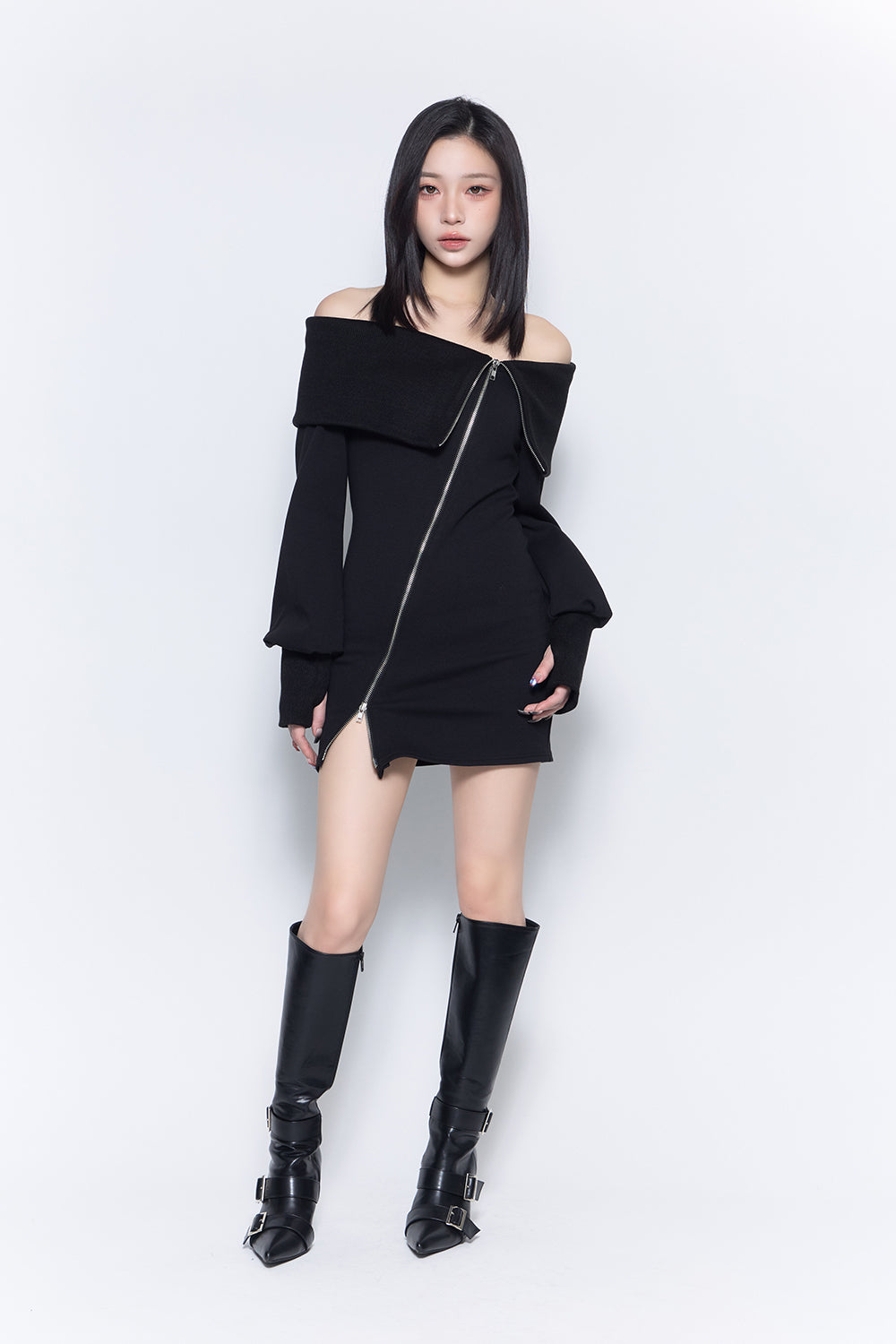 slash zipup mini dress